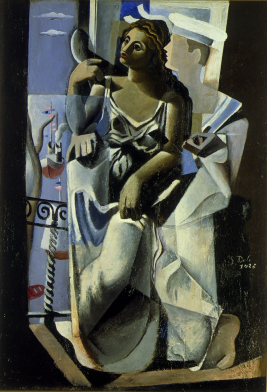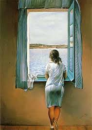 Dos bellos lienzos presenta Dalí: el susodicho, academia de buen estilo cubista, y otro más pequeño, de un realismo anecdótico –una muchacha vestida de azul, asomada a una ventana azul, frente al azul Mediterráneo.