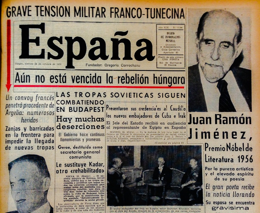 La jerarquización de su portada podía ser todo un editorial. En una escena de Tangerina, Olvido señala que no se le ha escapado el guiño a los lectores de una de octubre de 1956 en la que se da primacía a la noticia de la concesión del Premio Nobel al exiliado Juan Ramón Jiménez sobre la del encuentro del Caudillo con los nuevos embajadores de Cuba e Irak. Olvido es fruto de mi imaginación, pero esa primera plana es real.